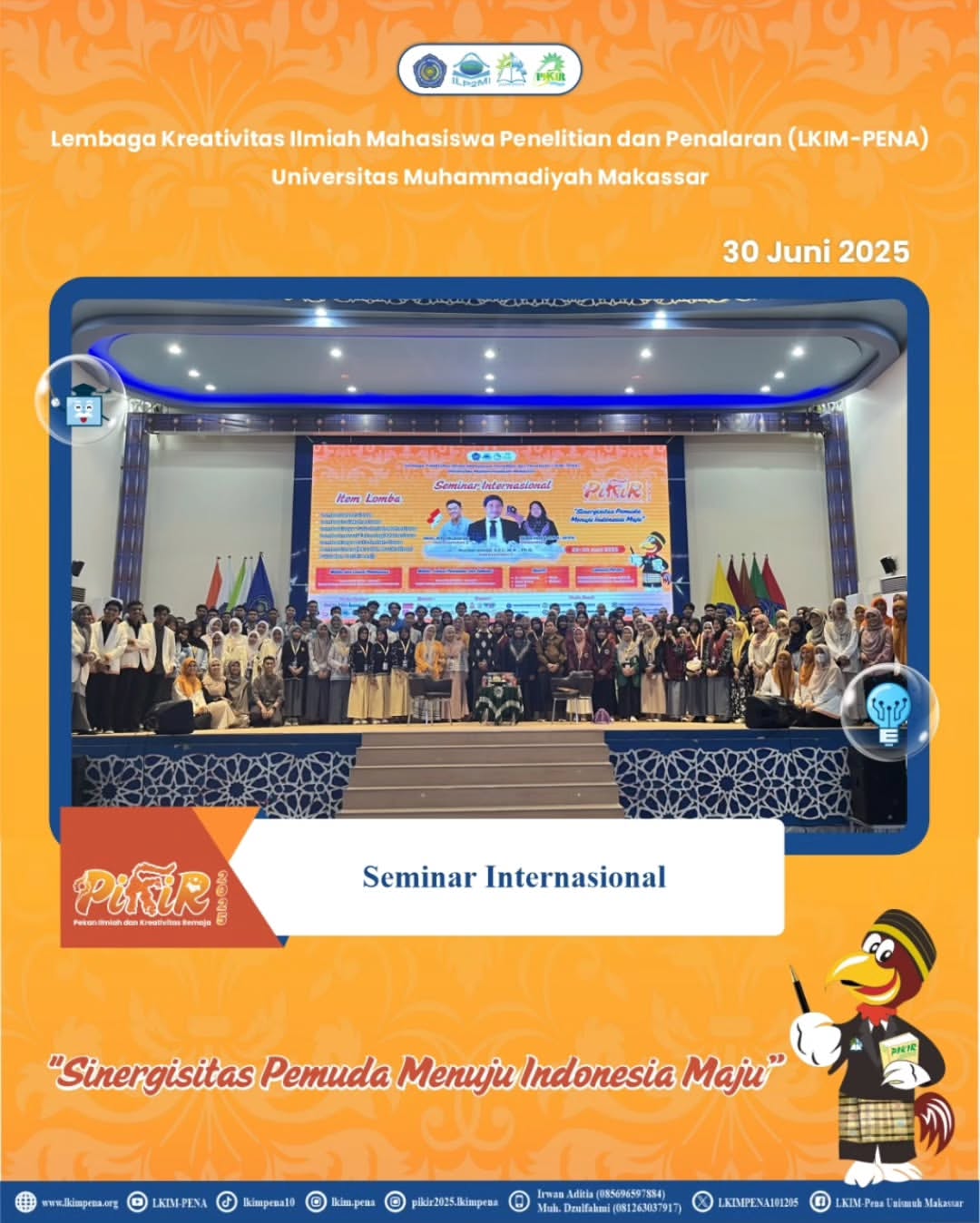 Unit Kegiatan Mahasiswa Lembaga Kreativitas Ilmiah Mahasiswa Penelitian dan Penalaran (UKM LKIM-PENA) Universitas Muhammadiyah Makassar sukses menggelar Seminar Internasional Pekan Ilmiah dan Kreativitas Remaja (PIKIR) 2025. Acara yang diselenggarakan pada Senin (30/06/2025) ini telah menjadi wadah penting untuk mendiskusikan peran Kecerdasan Buatan (AI) serta dampaknya bagi generasi masa depan. Kegiatan ini berjalan lancar dan dihadiri oleh ratusan peserta dari berbagai kalangan.