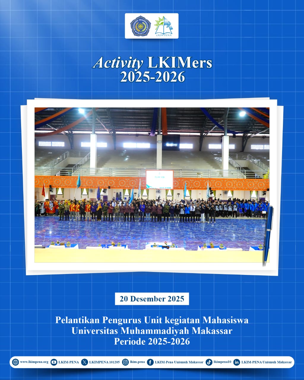 Sebagai bagian dari 10 Pilar UKM Unismuh Makassar, Lembaga Kreativitas Ilmiah Mahasiswa Penelitian dan Penalaran (LKIM-PENA) berkomitmen untuk terus menghadirkan ruang pengembangan nalar kritis, kreativitas ilmiah, dan tradisi akademik mahasiswa. Momentum pelantikan ini menjadi langkah awal bagi LKIM-PENA periode 2025–2026 untuk menjalankan program kerja yang berorientasi pada penguatan budaya keilmuan dan kontribusi nyata bagi institusi.